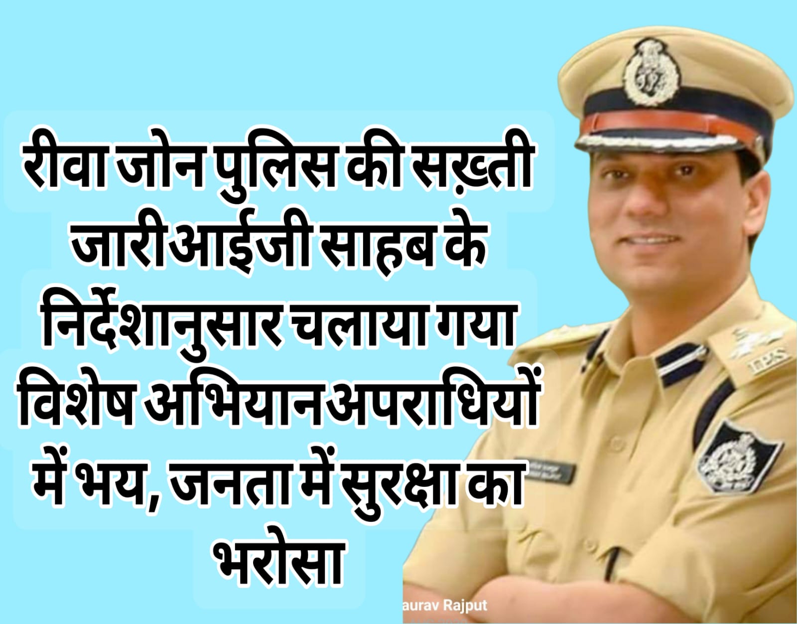 पुलिस महानिरीक्षक रीवा जोन श्री गौरव राजपूत के निर्देशन एवं मार्गदर्शन में 27 सितम्बर 2025 को रीवा जोन के समस्त