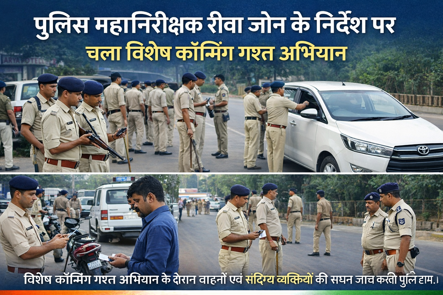 रीवा | 29 दिसंबर 2025 रीवा जोन में कानून व्यवस्था को और अधिक सुदृढ़ करने एवं अपराधों पर प्रभावी नियंत्रण के उद्देश्य से पुलिस महानिरीक्षक रीवा जोन के निर्देशन में जोन के समस्त जिलों में एक दिवसीय विशेष कॉम्बिंग गश्त अभियान संचालित किया गया। इस अभियान के अंतर्गत रीवा, सतना, सीधी, मऊगंज एवं मैहर जिलों के पुलिस अधीक्षकों के नेतृत्व में थाना स्तर पर सघन कार्रवाई की गई। संदिग्ध व्यक्तियों की जांच, वाहनों की सघन चेकिंग एवं सार्वजनिक स्थलों पर निगरानी बढ़ाई गई। पुलिस टीमों द्वारा होटल, ढाबा, बस स्टैंड, बाजार एवं संवेदनशील क्षेत्रों में विशेष सतर्कता बरती गई, जिससे असामाजिक तत्वों में हड़कंप की स्थिति बनी रही। जिला स्थाई वारंट गिरफ्तारी वारंट निगरानी बदमाश गुंडा चेकिंग रीवा 48 66 39 53 सतना 57 70 56 123 सीधी 24 51 32 56 मऊगंज 26 17 20 20 मैहर 09 29 26 36 योग 164 233 173 288 पुलिस महानिरीक्षक द्वारा निर्देशित किया गया है कि इस प्रकार की कॉम्बिंग गश्त एवं सघन चेकिंग अभियान नियमित रूप से जारी रखे जाएं, ताकि अपराधियों एवं असामाजिक तत्वों पर प्रभावी नियंत्रण बनाया जा सके। मध्यप्रदेश पुलिस – आपकी सुरक्षा, हमारा संकल्प