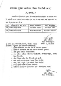 पुलिस अधीक्षक, जिला सिंगरौली द्वारा निरीक्षकों के तबादले के आदेश जारी किए गए हैं।